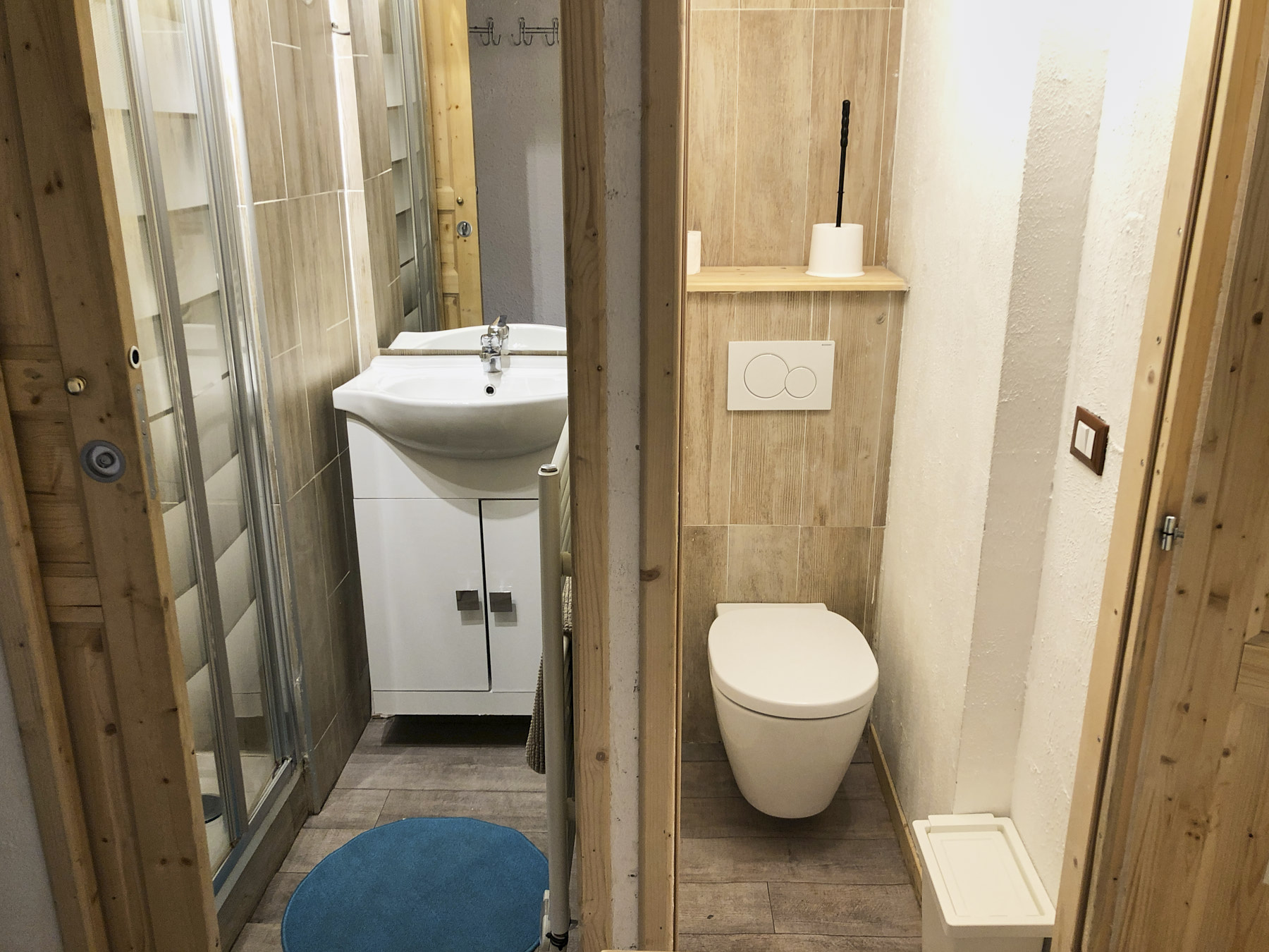 Entree sur le deuxième plancher: 1 chambre double, 2 lits simples superposés dans le passage, toilette, douche, salle de rangement.
